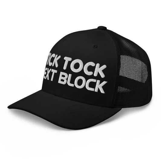 Tick Tock Next Block - Retro Trucker Bitcoin Hat - White Embroidery