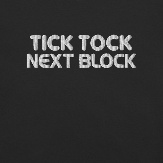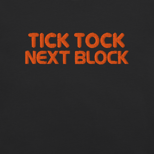 Tick Tock Next Block – Bitcoin Embroidered T-Shirt