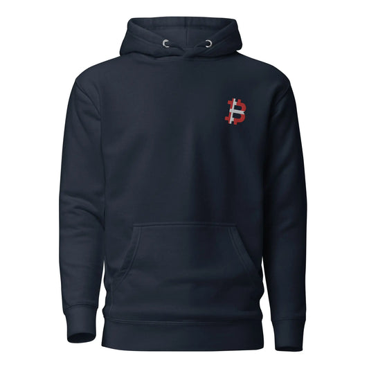 Dänische Bitcoin Flagge - Bitcoin Hoodie - Weiße Stickerei - Unisex - Kapuzenpullover