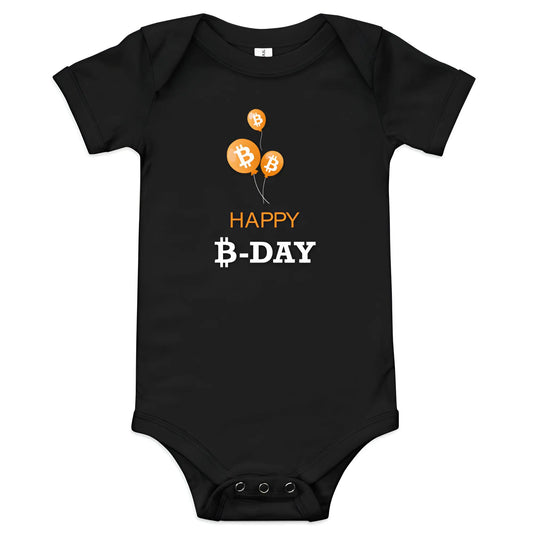 Happy B-Day – Baby Bitcoin Strampler – Einteiler mit kurzen Ärmeln