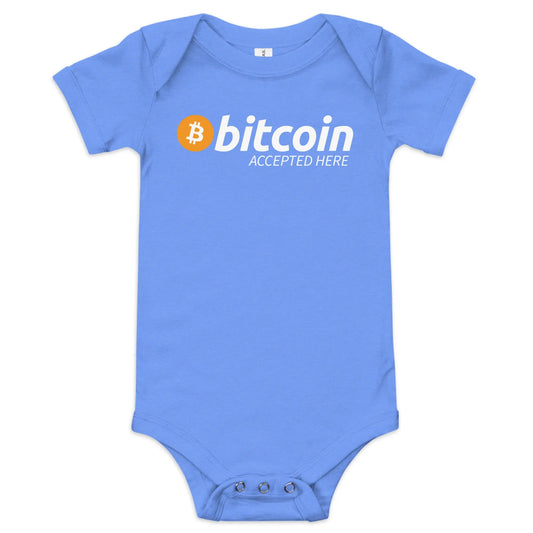 Bitcoin Accepted Here - Baby Bitcoin Strampler – Einteiler mit kurzen Ärmeln