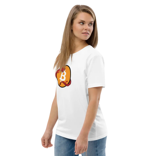 Bitcoin Red Dragon T-Shirt – BitPopArt – Weiße Farbe – Premium Bio-Baumwolle