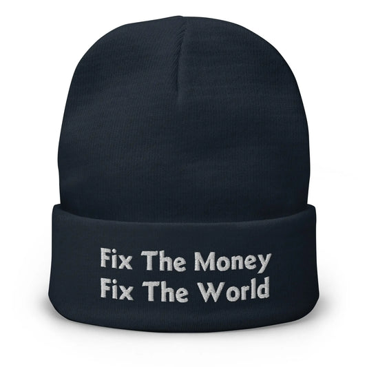 Fix the Money - Fix The World - Bitcoin Beanie - Weiße Stickerei