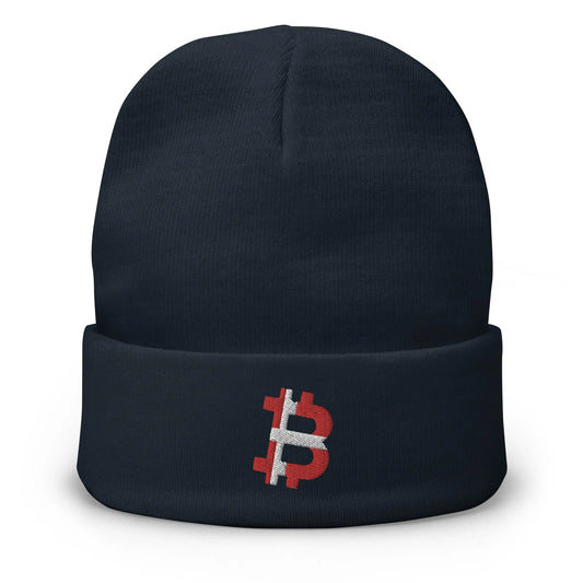 Dänische Bitcoin Flagge - Bitcoin Beanie Mütze - Stickerei