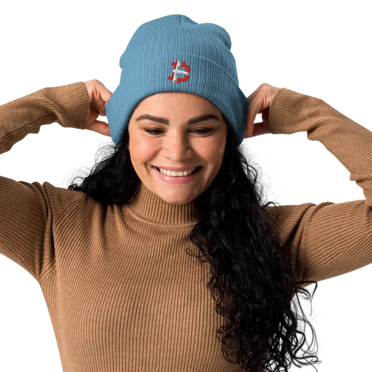 Dänische Bitcoin Flagge - Gerippte Beanie Mütze - Bio Baumwolle