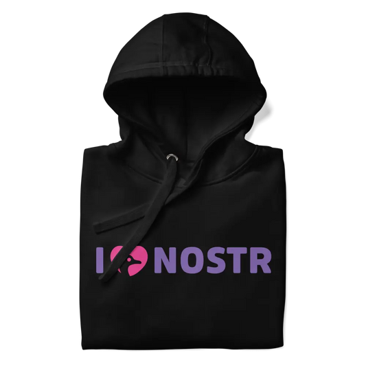 I Love Nostr Hoodie - By BitPopArt - Zwart - Premium - Unisex