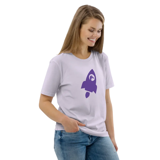 Nostr Rocket T-shirt - By BitPopArt - Lavendel Kleur - Biologisch Katoen - Unisex