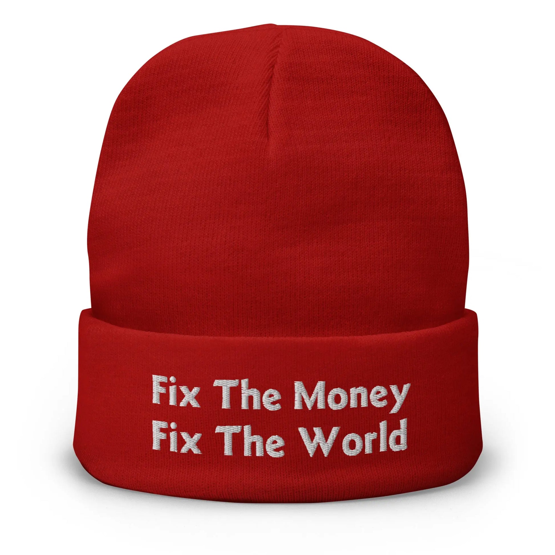 Bitcoin Beanie - Fix The Money - Fix The World - Geborduurd