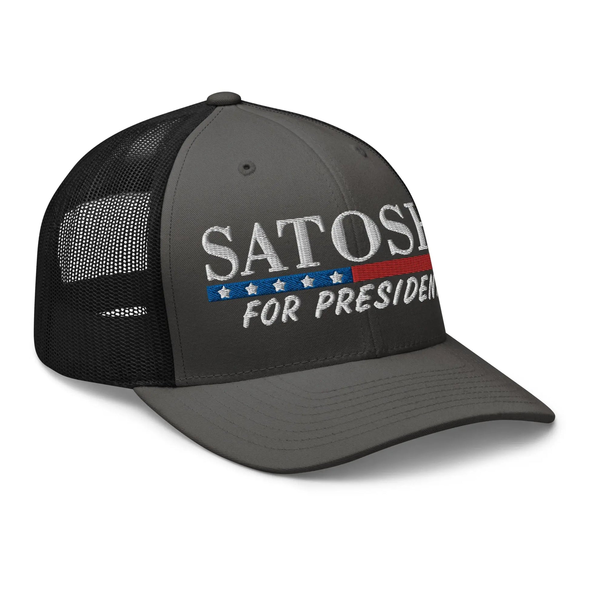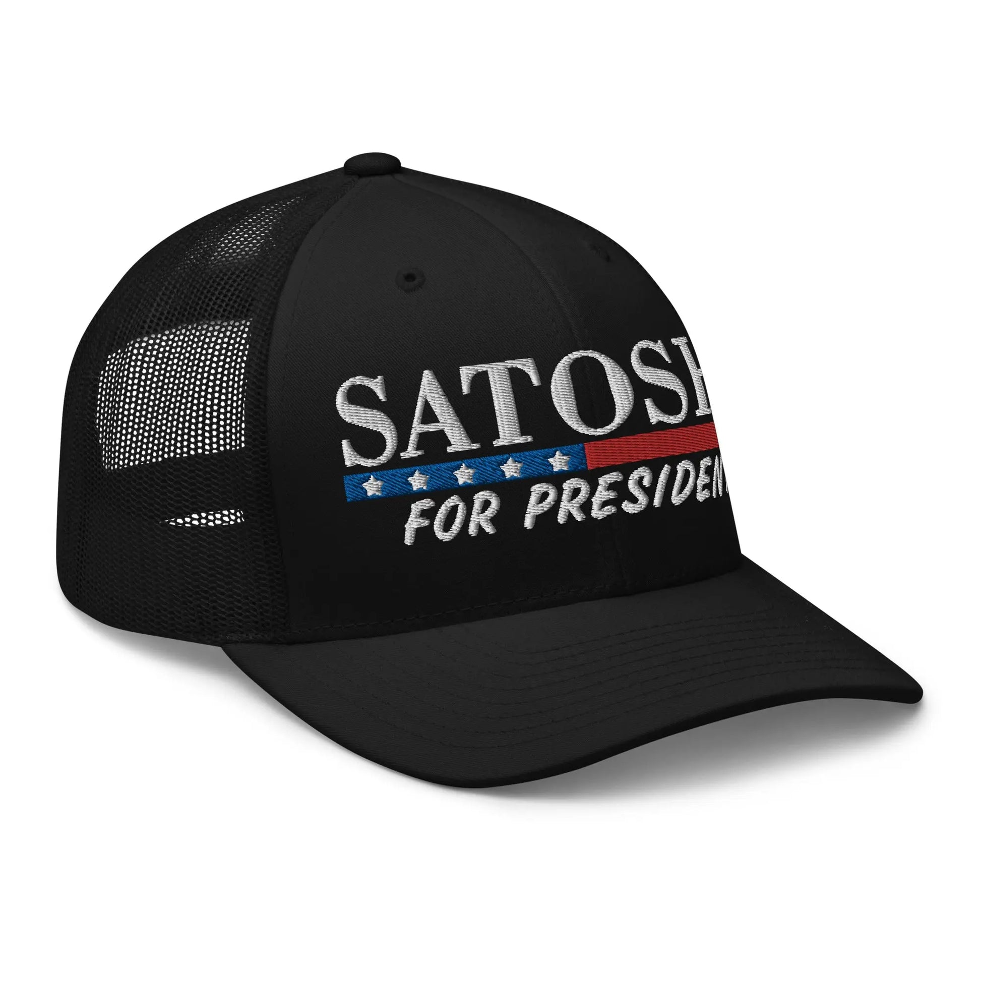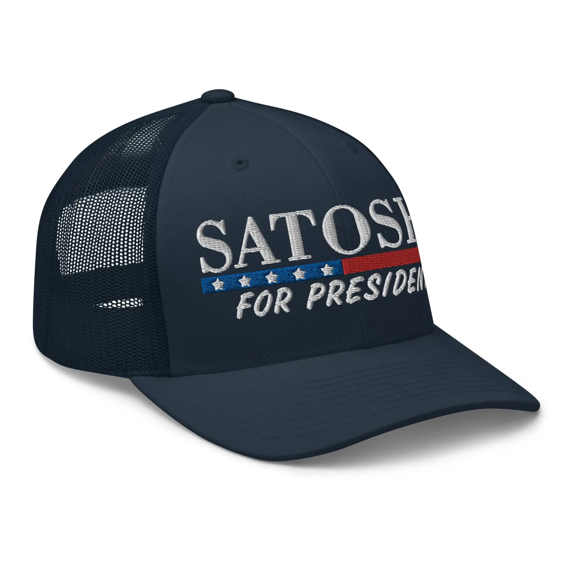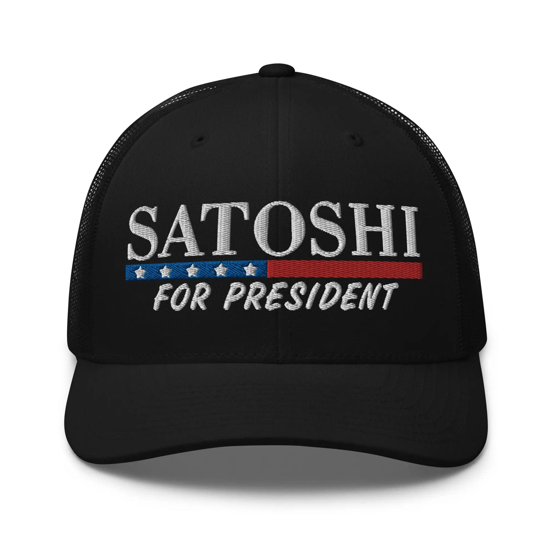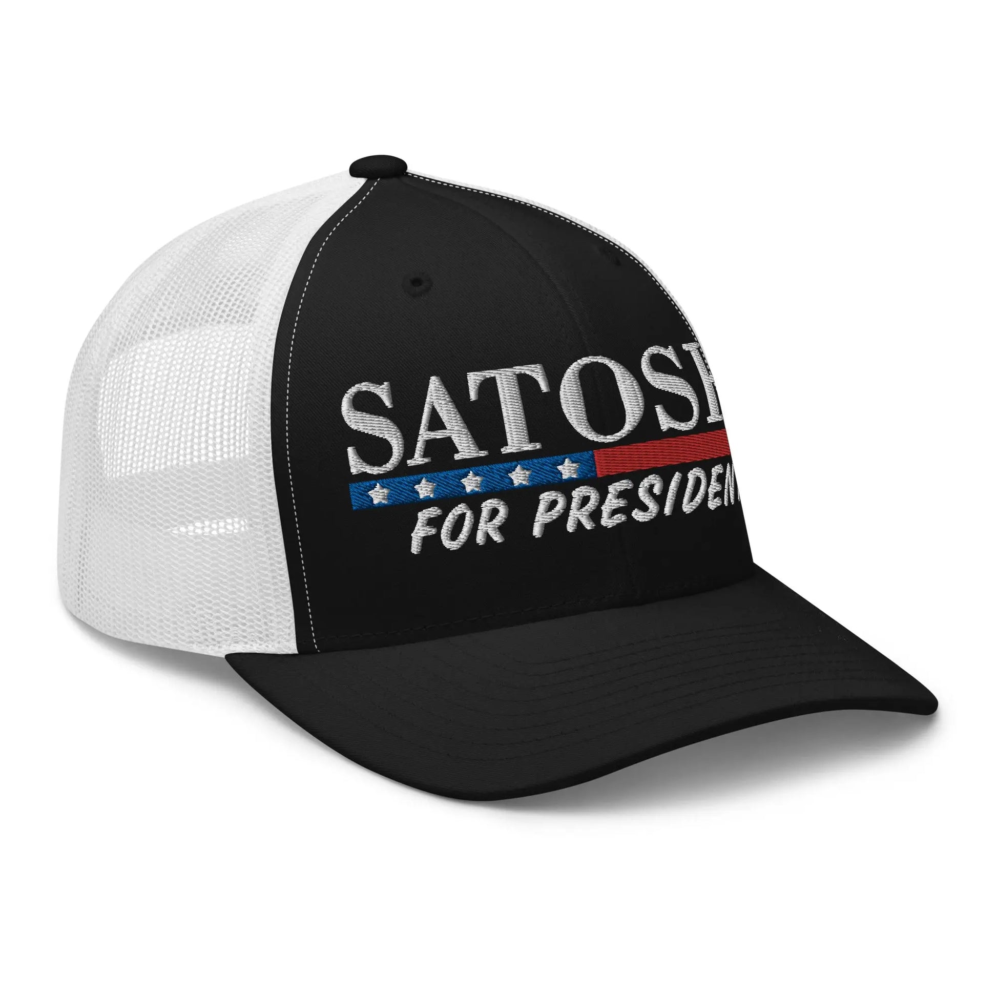Satoshi For President - Retro Trucker Bitcoin Petje - Geborduurd