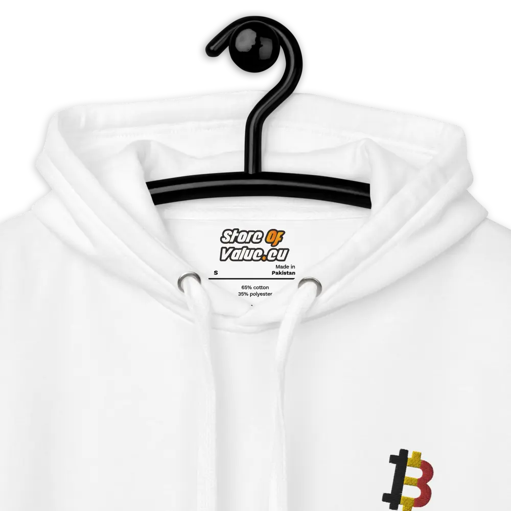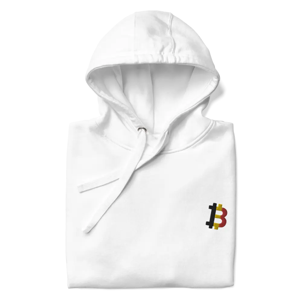 Expertly embroidered, the hoodie features an integrated design of the Bitcoin symbol with the red, yellow, and black hues of the Belgian flag, making it a standout piece for both Bitcoin enthusiasts and Belgium patriots.