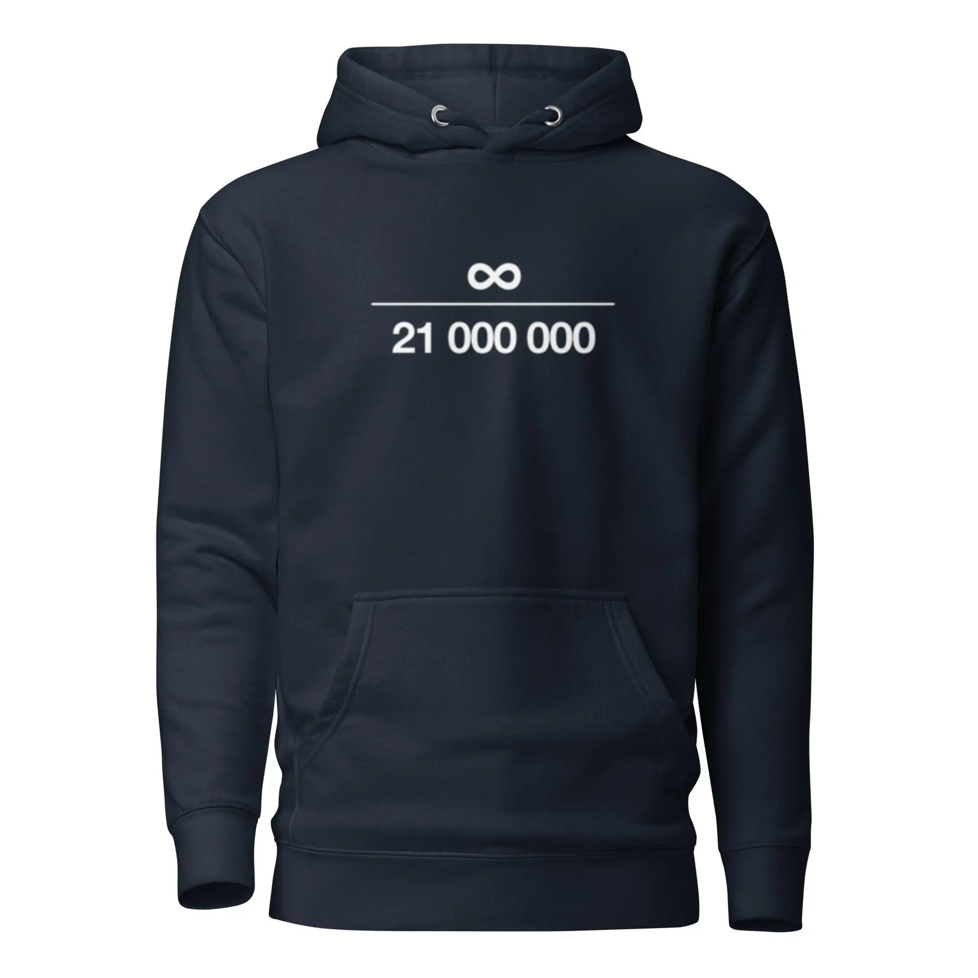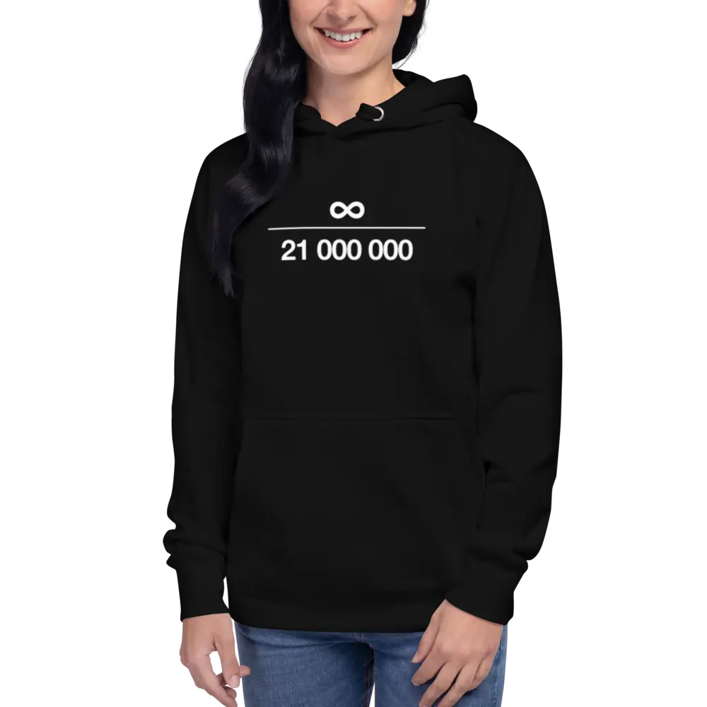 Connect with the foundational principles of Bitcoin with the "Infinity" divided by 21 million Hoodie.