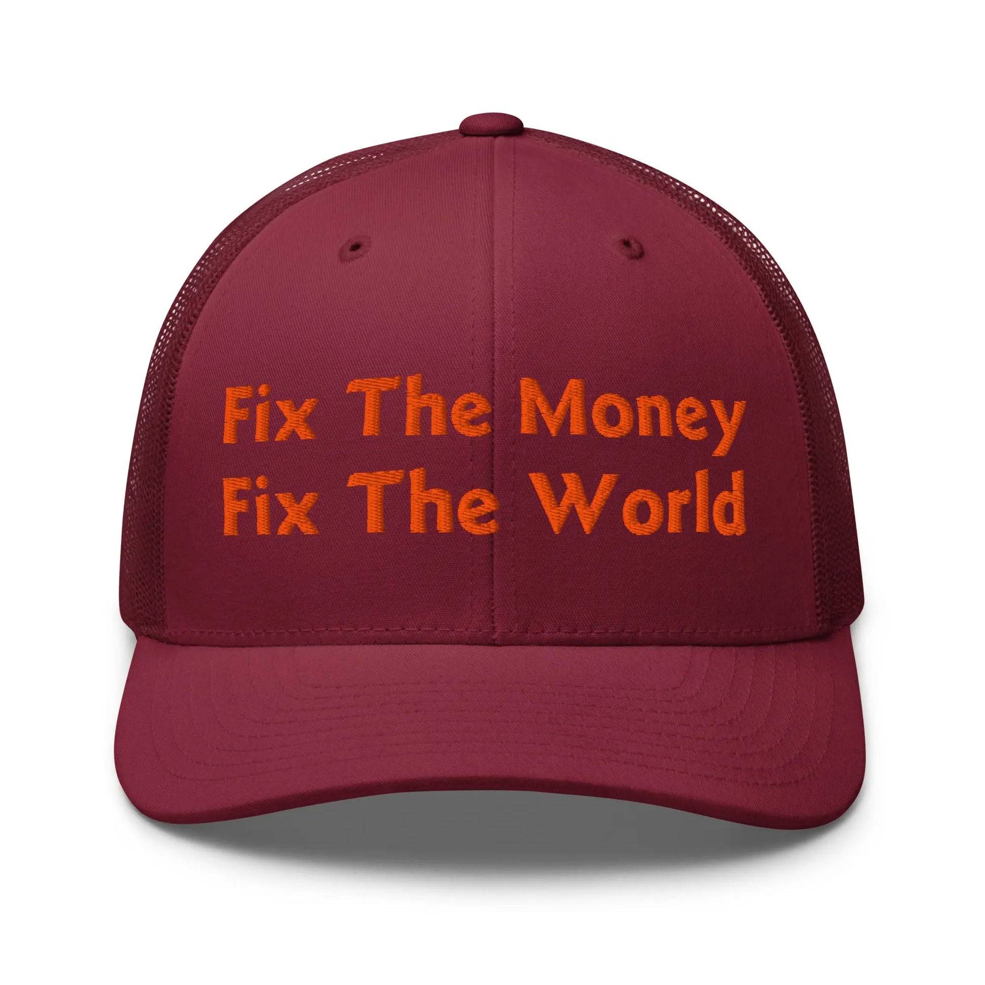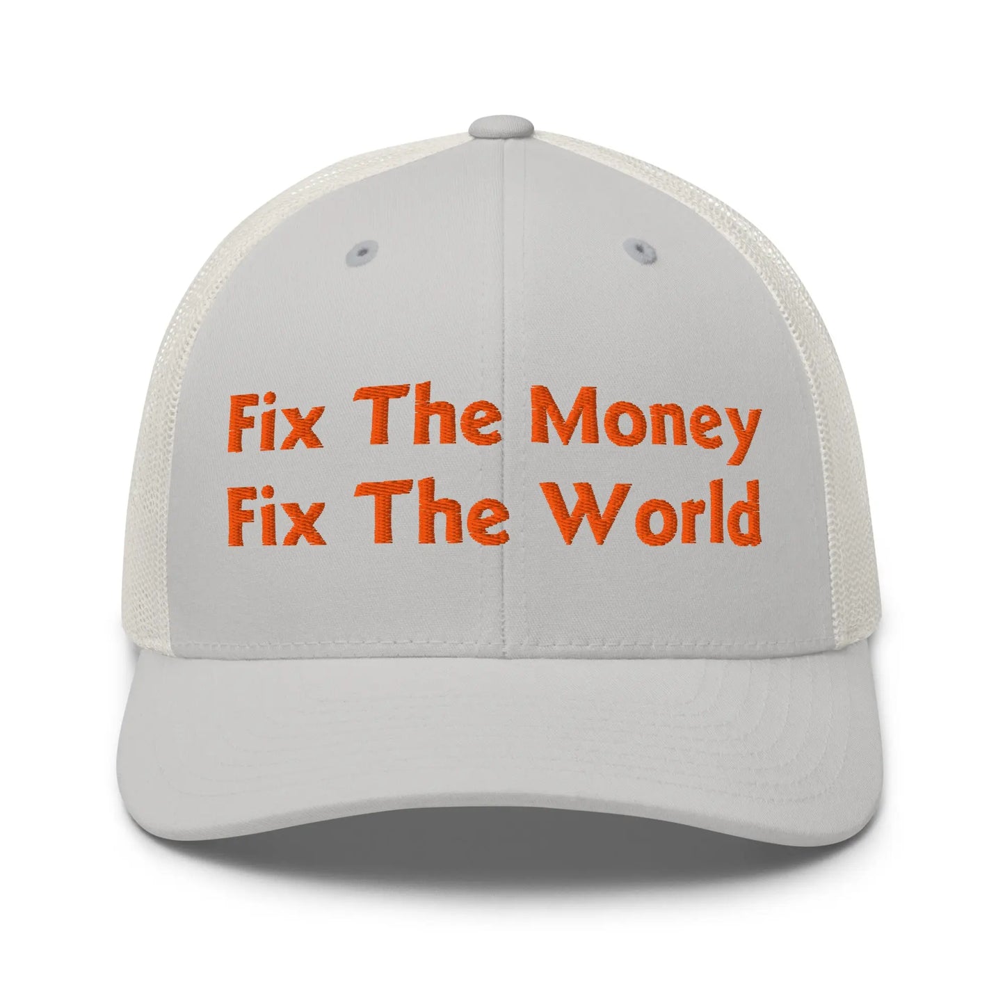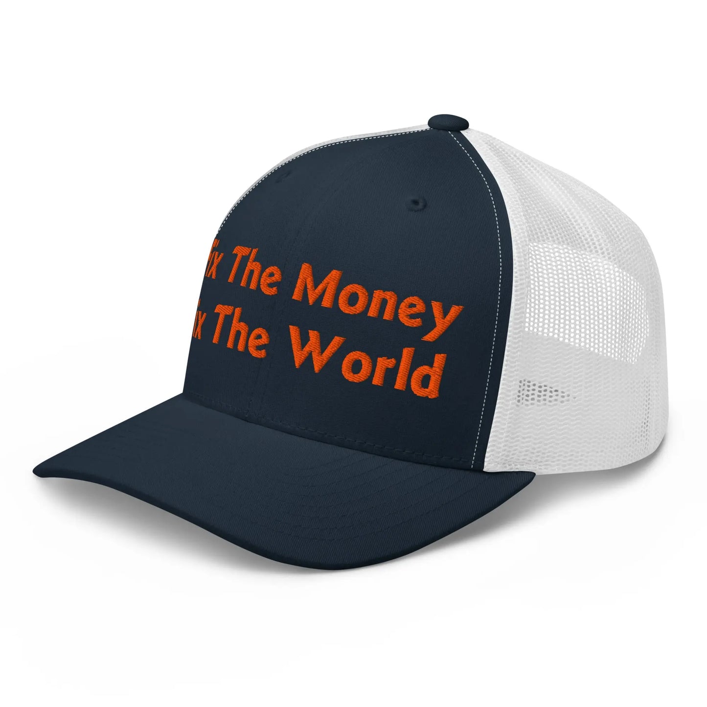 Make a difference with the Fix the Money - Fix The World - Retro Trucker Bitcoin Hat.